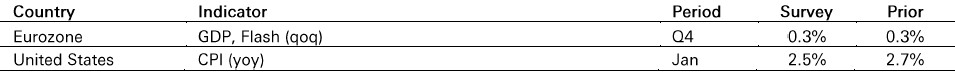 In the UK, Q4 2025 GDP rose less than expected by 0.1% qoq, driven by the manufacturing sector, while construction dragged and the services sector flatlined.