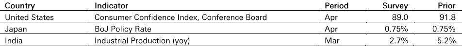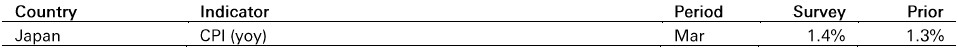 In Japan, CPI rose 1.5% yoy in March, slightly above market consensus, as higher energy prices are expected to continue putting upward pressure on inflation.