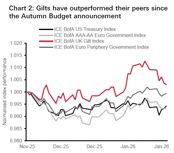 • While we remain positive on global and US stocks and continue to position in Asia for geographical diversification, we have adjusted our equity allocation by upgrading Materials across regions and underweighting Europe ex-UK stocks after taking profits on European peripheral markets. UK Gilts have performed well since the Autumn Budget and benefit from favourable tailwinds, supporting our upgrade to overweight, and aligning with our investment grade credit positioning. We also upgrade Japanese government bonds to neutral following the recent sell-off.