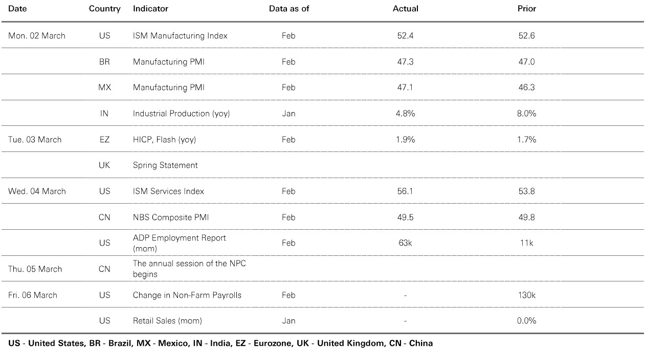 Past performance does not predict future returns. The level of yield is not guaranteed and may rise or fall in the future. For informational purposes only and should not be construed as a recommendation to invest in the specific country, product, strategy, sector, or security. Diversification does not ensure a profit or protect against loss. Any views expressed were held at the time of preparation and are subject to change without notice. Index returns assume reinvestment of all distributions and do not reflect fees or expenses. You cannot invest directly in an index. Any forecast, projection or target where provided is indicative only and is not guaranteed in any way. Costs may vary with fluctuations in the exchange rate. Source: HSBC Asset Management. Macrobond, Bloomberg, Oxford Economics. Data as at 7.30am UK time 06 March 2026.