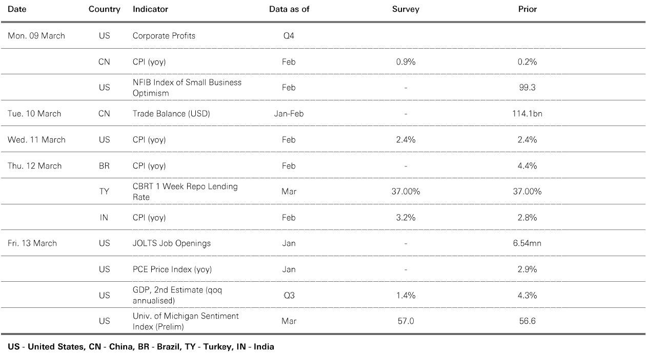 The value of investments and any income from them can go down as well as up and investors may not get back the amount originally invested. Past performance does not predict future returns. The level of yield is not guaranteed and may rise or fall in the future. Past performance does not predict future returns. For informational purposes only and should not be construed as a recommendation to invest in the specific country, product, strategy, sector, or security. Diversification does not ensure a profit or protect against loss. Any views expressed were held at the time of preparation and are subject to change without notice. Any forecast, projection or target where provided is indicative only and is not guaranteed in any way. Source: HSBC Asset Management, Bloomberg, Macrobond. Data as at 7.30am UK time 06 March 2026.