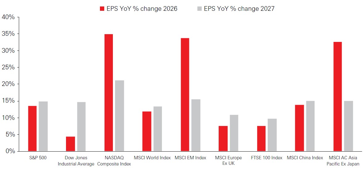 Globally, the cyclical outlook is also healthy, with inflation under control and corporate margins close to record highs, particularly in the US. Earnings growth is strong across sectors in the US, with profits are accelerating most rapidly in Asia. Even Europe is benefitting from increased AI adoption. This healthy starting point should allow companies to absorb higher oil prices without major issues.